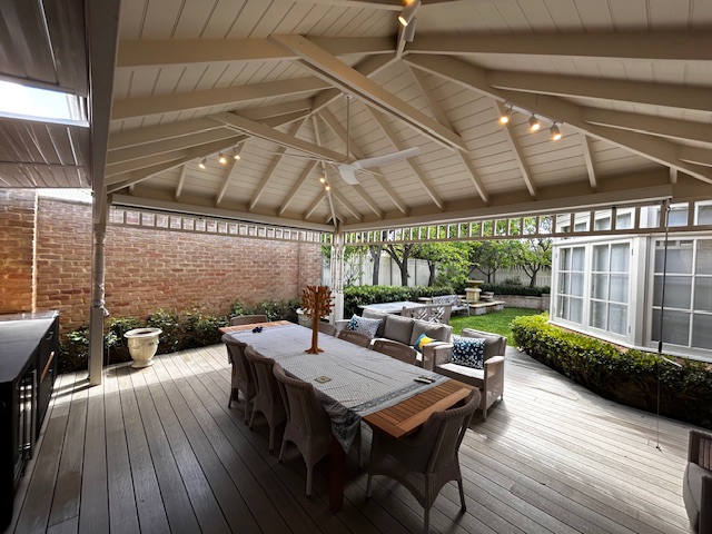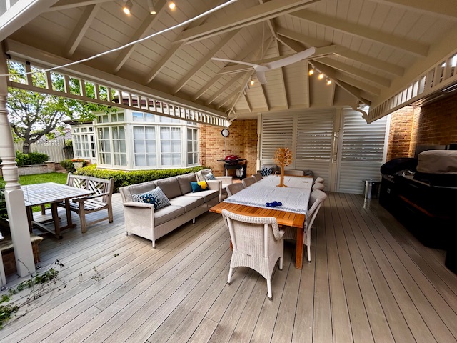This project showcases a soft, inviting alfresco space featuring a Colorbond roof and a timberline ceiling, avoiding traditional starkness. Subtle architectural charm is added by turned timber posts and a freeze rail beam. The centerpiece is the Newtech Wood composite decking, which provides the warmth of timber without the maintenance, seamlessly tying the floor to the neutral ceiling and the surrounding garden’s natural palette, resulting in a patio that feels relaxed yet refined.